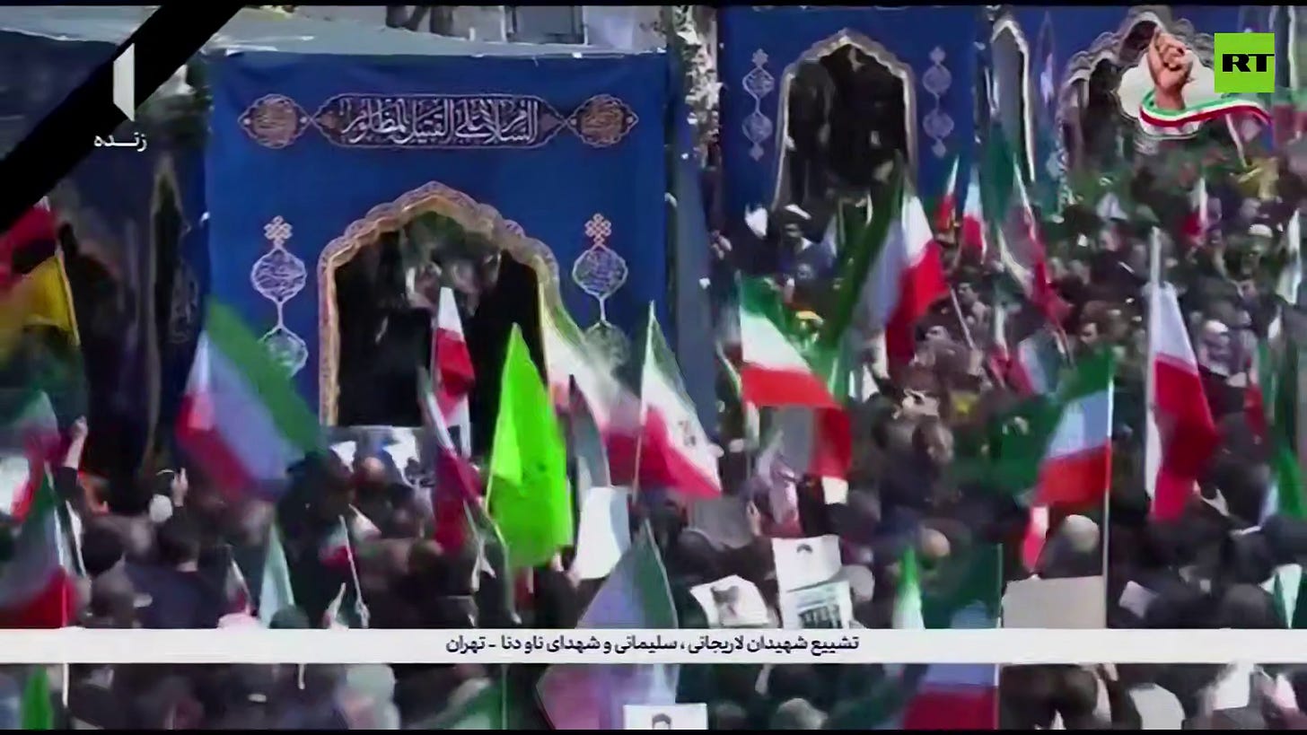 Today, the Zionists killed 4 in Gaza, including a father, mother and their son. In Khuzestan (Iran) 20 were killed and 40 injured by USraeli attacks on residential areas. ‘Popular Mobilization Forces’ in Iraq lost 8 of its fighters today: several more were injured by Israeli Air Strikes. Late in the day it was reported that 2 young men were killed north of Ramallah. In the evening, a paramedic and a civilian were killed in Lebanon. In a 24 hour period, 16 civilians were killed in Gaza, including 9 police officers. Sadly, Ali Larijani, Iran’s National Security Chief, has been assassinated along with Gholamreza Soleimani, commander of Iran’s paramilitary Basij force. A whole block was destroyed along with the residents who lived there. They were murdered just to kill these two men - according to Scott Ritter. The Kremlin has condemned the murders. This is getting annoying: Iran should be placing its top people out of harm’s way. Overnight 1 civilian was killed and 7 injured in Malfadon (South Lebanon).